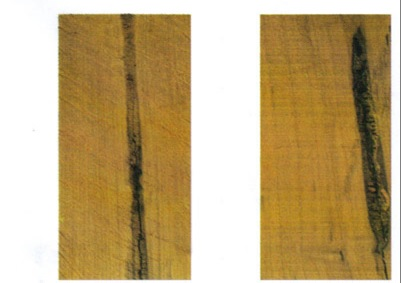 Черноватая прожилка в цвете на некоторых участках, которая считается дефектом с точки зрения внешнего вида, но не влияет на прочность пиломатериала.